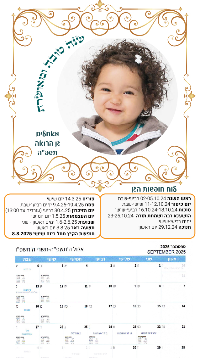 לוחות שנה גדולים עם תמונת הילד/ה 23 שח
