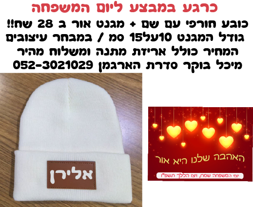 כובע חורפי עם שם הילד/ה 20 שח אליה