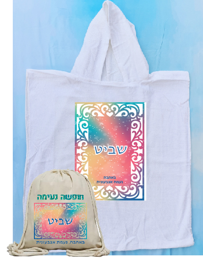 מגבת פונצ'ו 100% כותנה עם שם 38-42 שח