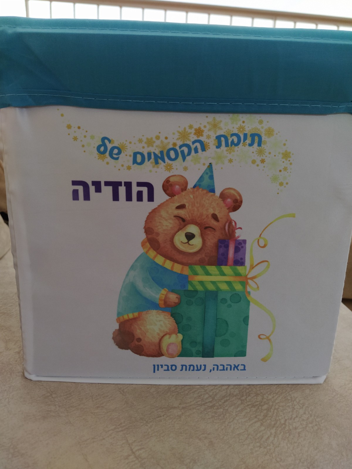 כיסאות מודפסים עם שם הילד/ה, תיבות אחסון מודפסות עם שם הילד/ה – מתנות לגני ילדים
