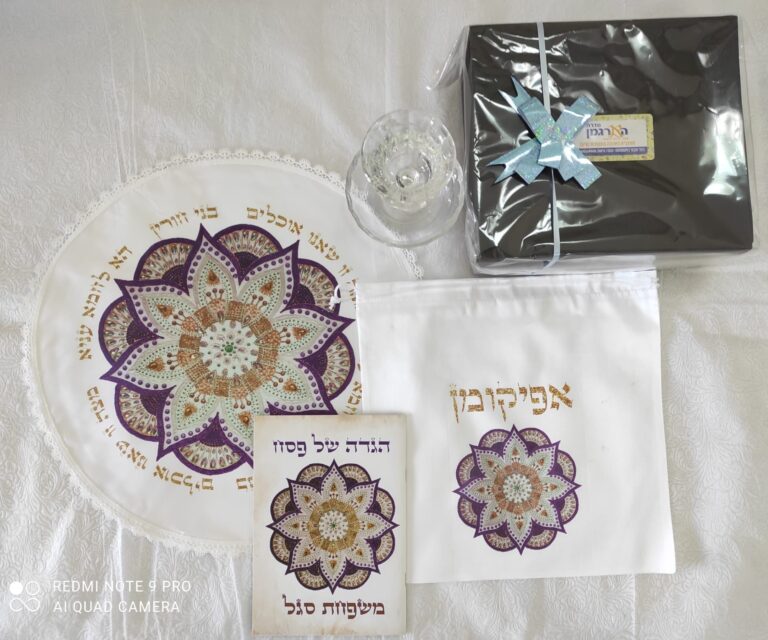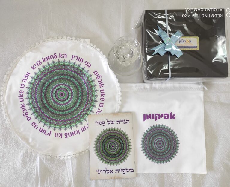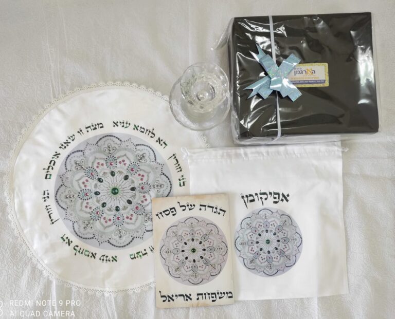 כוס קידוש מקריסטל מפת שולחן דוחה כתמים ונוזלים כיסוי מצה מהודר עגול מסאטן ל 3 מצות שקית אפיקומן סאטן תואמת אפשרות להוספת הגדה של פסח