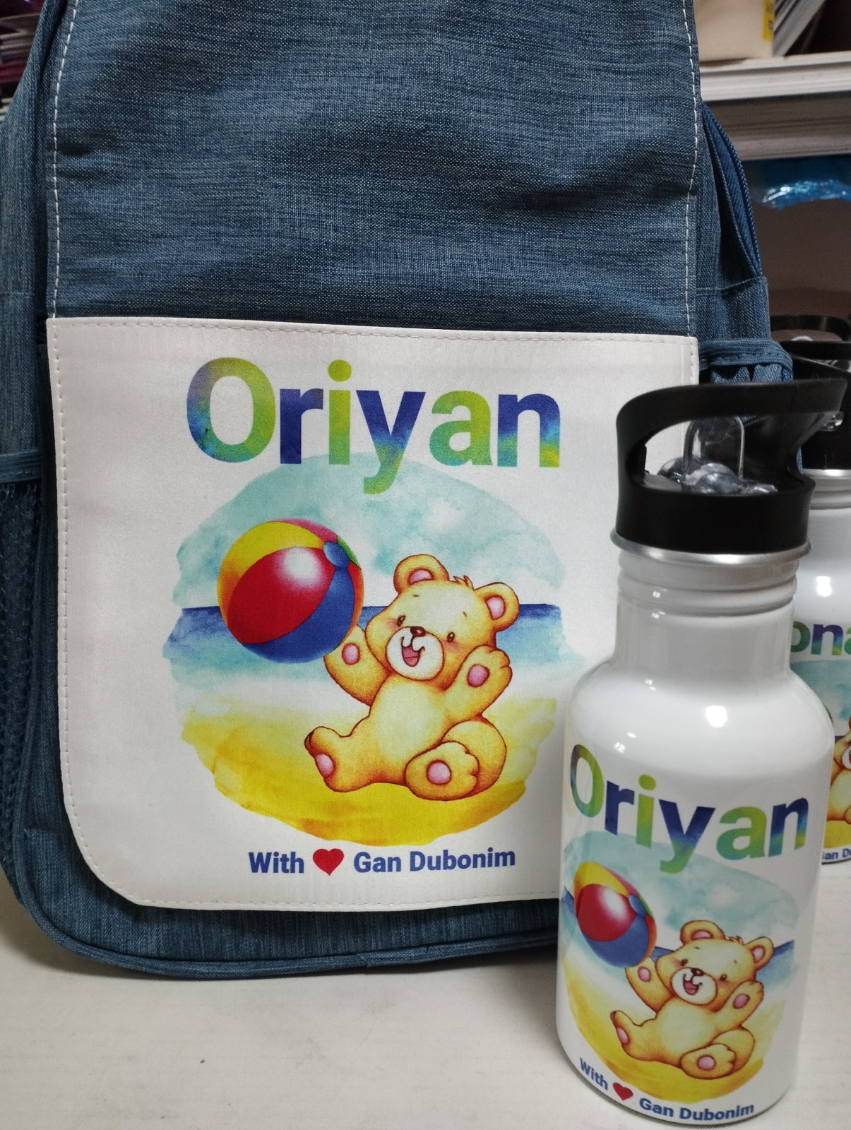 תיק גב מודפס עם בקבוק נירוסטה תואם