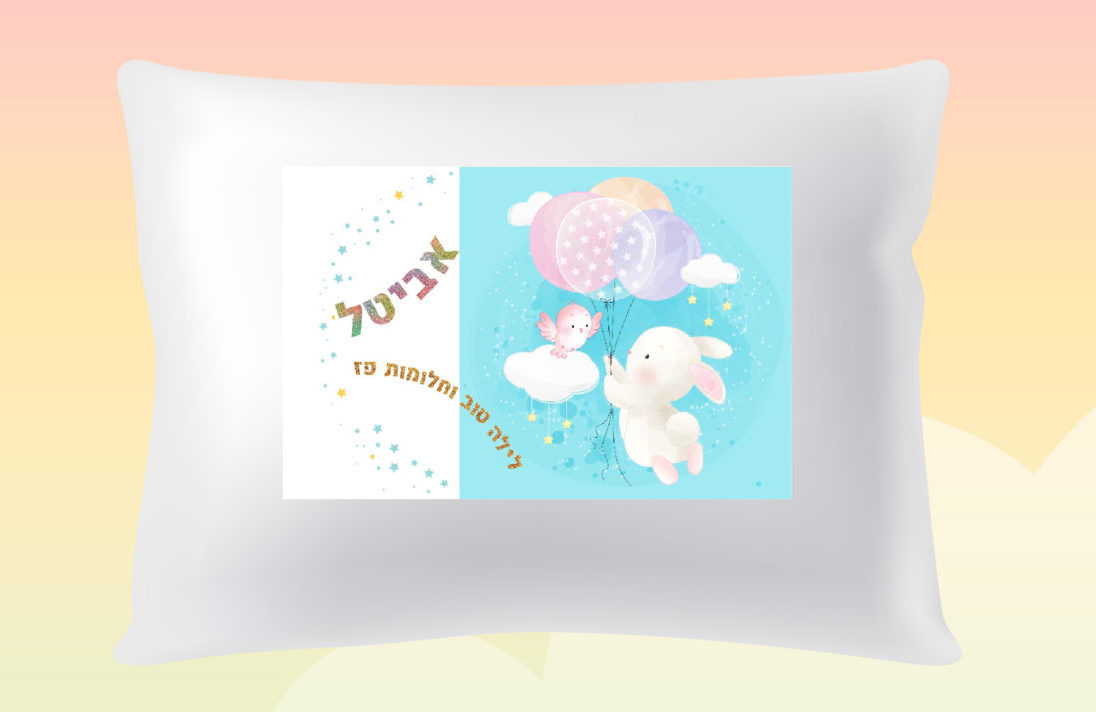 מתאים למיטת יחיד בגודל 2.00 מטר על 95 ס"מ רוחב + ציפית לכרית בגודל 50 על 70 ס"מ עם הדפסת עיצוב ושם הילד/ה על הכרית בגודל 4