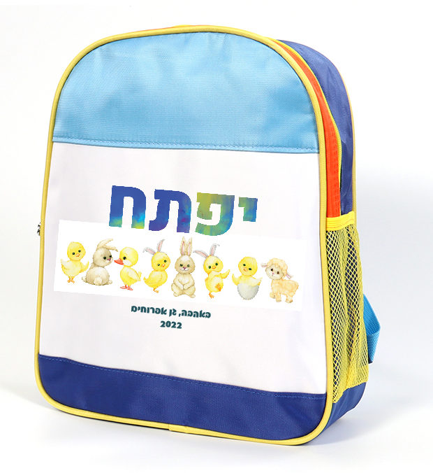 תיק גב צבעוני ושמח לילדי גן – בלעדי לסדרת הארגמן – עם הדפסה בגודל 4A