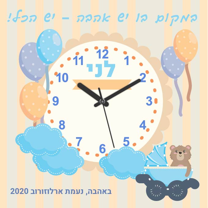 שעון קיר אישי עם שם הילד/ה,