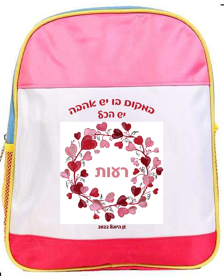 תיק גב צבעוני ושמח לילדי גן – בלעדי לסדרת הארגמן – עם הדפסה בגודל 4A