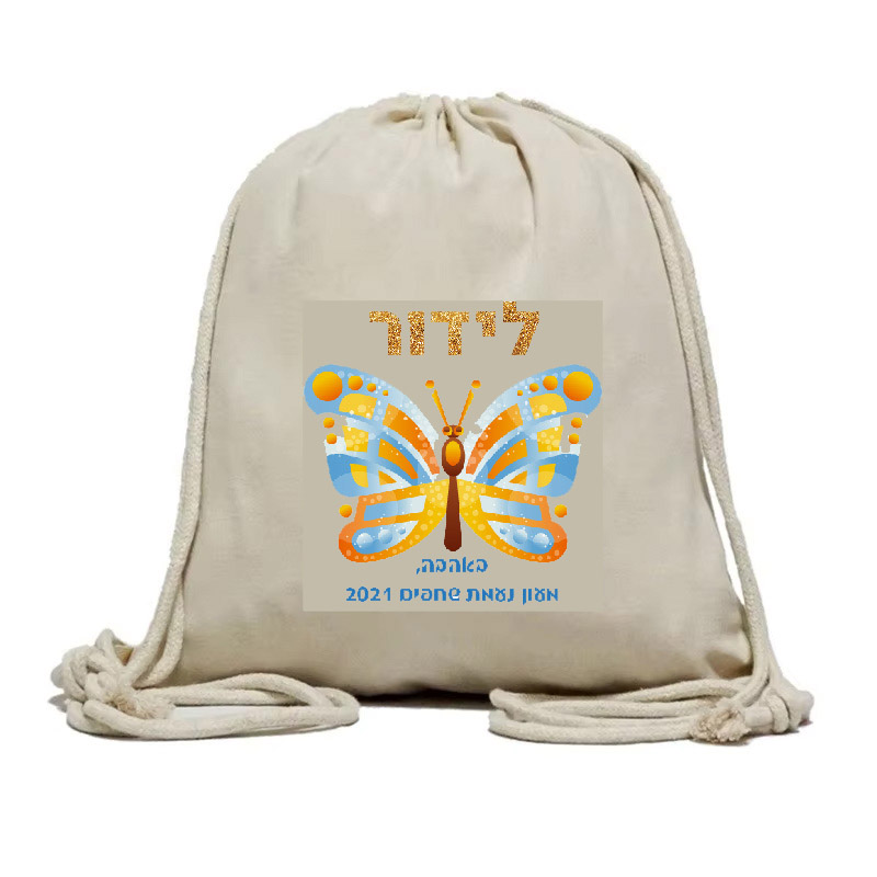 תיק שרוכים מבד קנבס, מודפס עם עיצוב שם הילד/ה