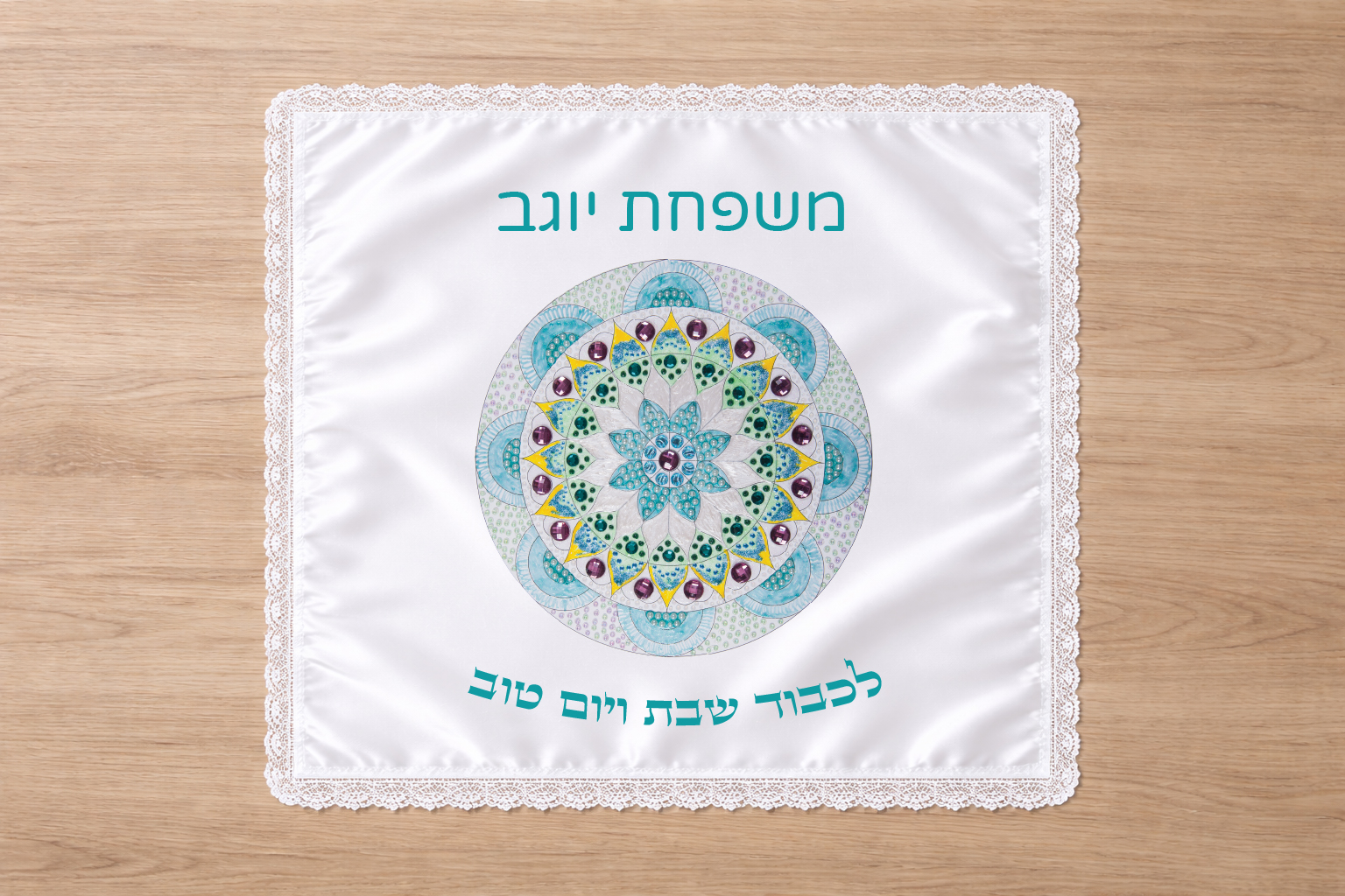 כיסוי חלה גדול ומהודר מסאטן לבן עם שול תחרה לבן