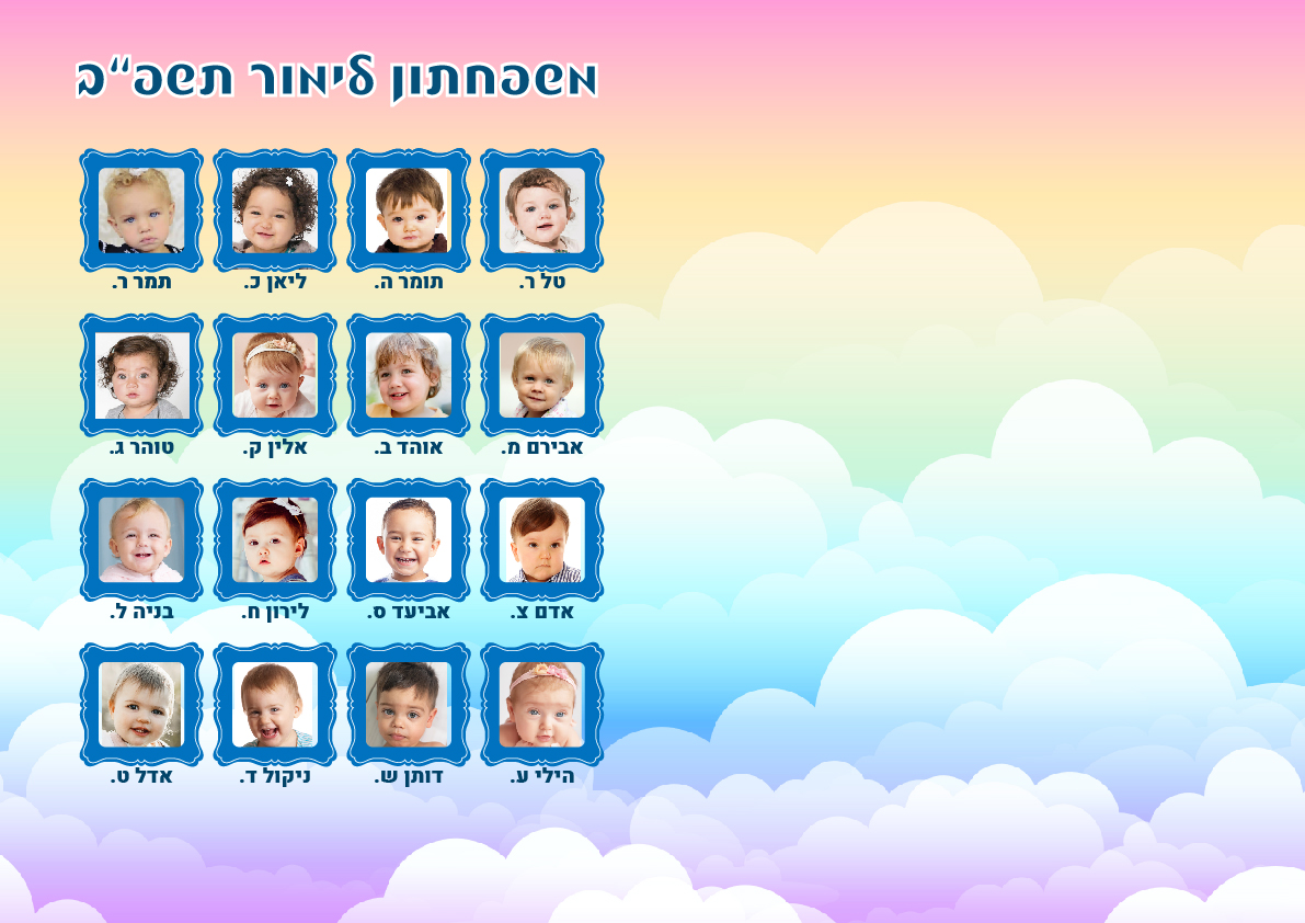 תמונת מחזור מזכרת לילדי הגן – גודל 4A , הדפסה צד אחד על נייר עבה.