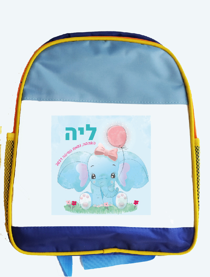 תיק גב צבעוני ושמח לילדי גן – בלעדי לסדרת הארגמן – עם הדפסה בגודל 4A