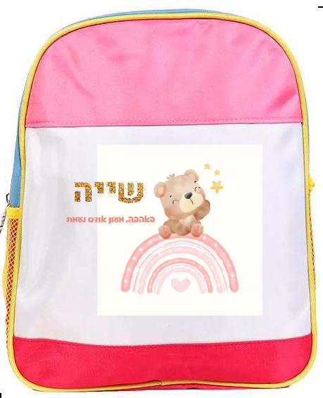 תיק גב צבעוני ושמח לילדי גן – בלעדי לסדרת הארגמן – עם הדפסה בגודל 4A