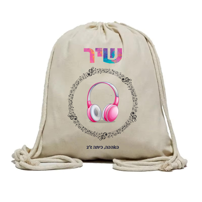 תיק שרוכים מבד קנבס, מודפס עם עיצוב שם הילד/ה