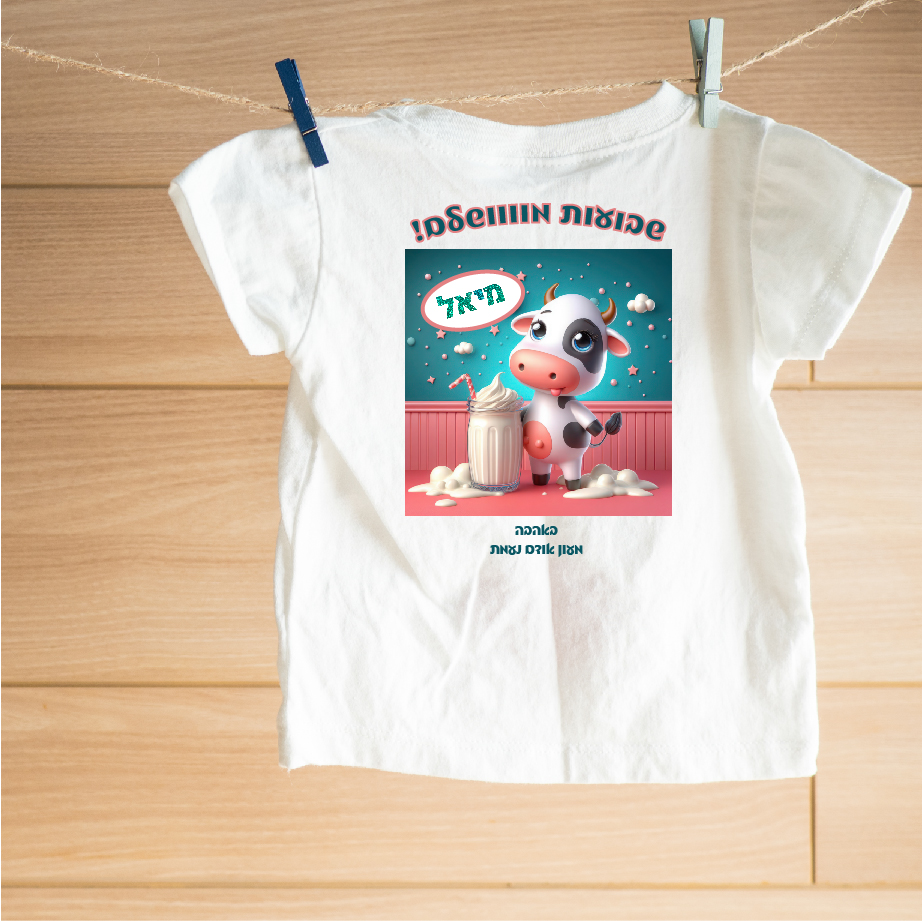 חולצה נעימה , רכה ואיכותית, מודפסת עם עיצוב ושם הילד/ה + הקדשה מהגן / מהמעון ב