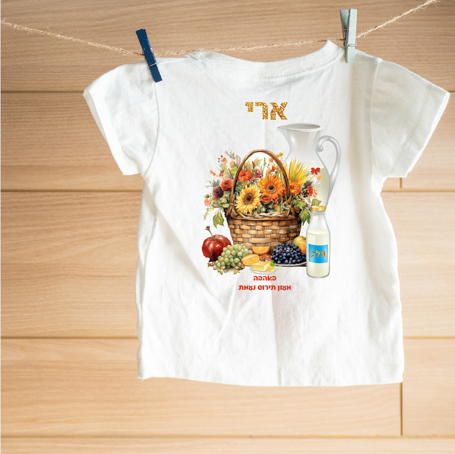 חולצה נעימה , רכה ואיכותית, מודפסת עם עיצוב ושם הילד/ה + הקדשה מהגן / מהמעון ב