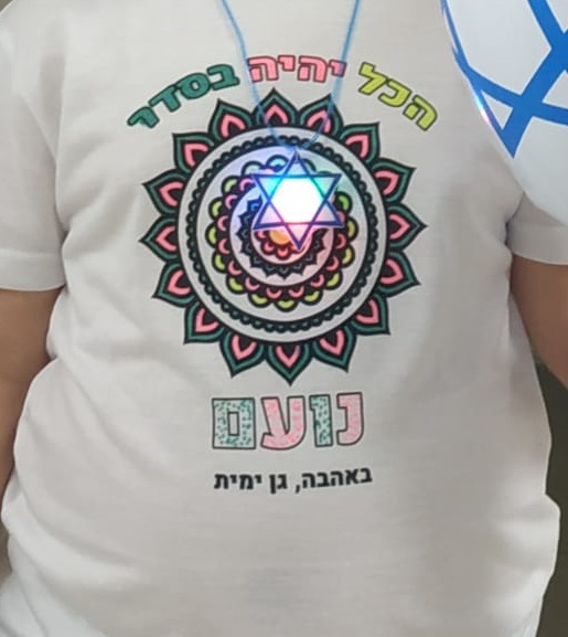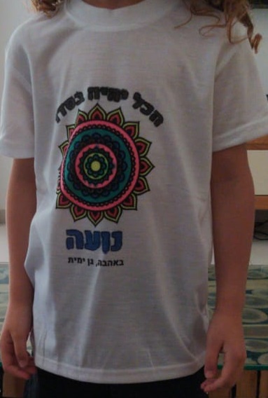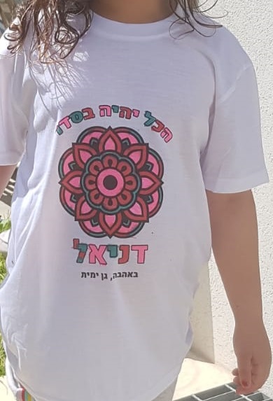 חולצה נעימה מודפסת עם שמות הילדים והקדשה מהגן / מהמעון (לא מדבקה) עם שם הילד/ה