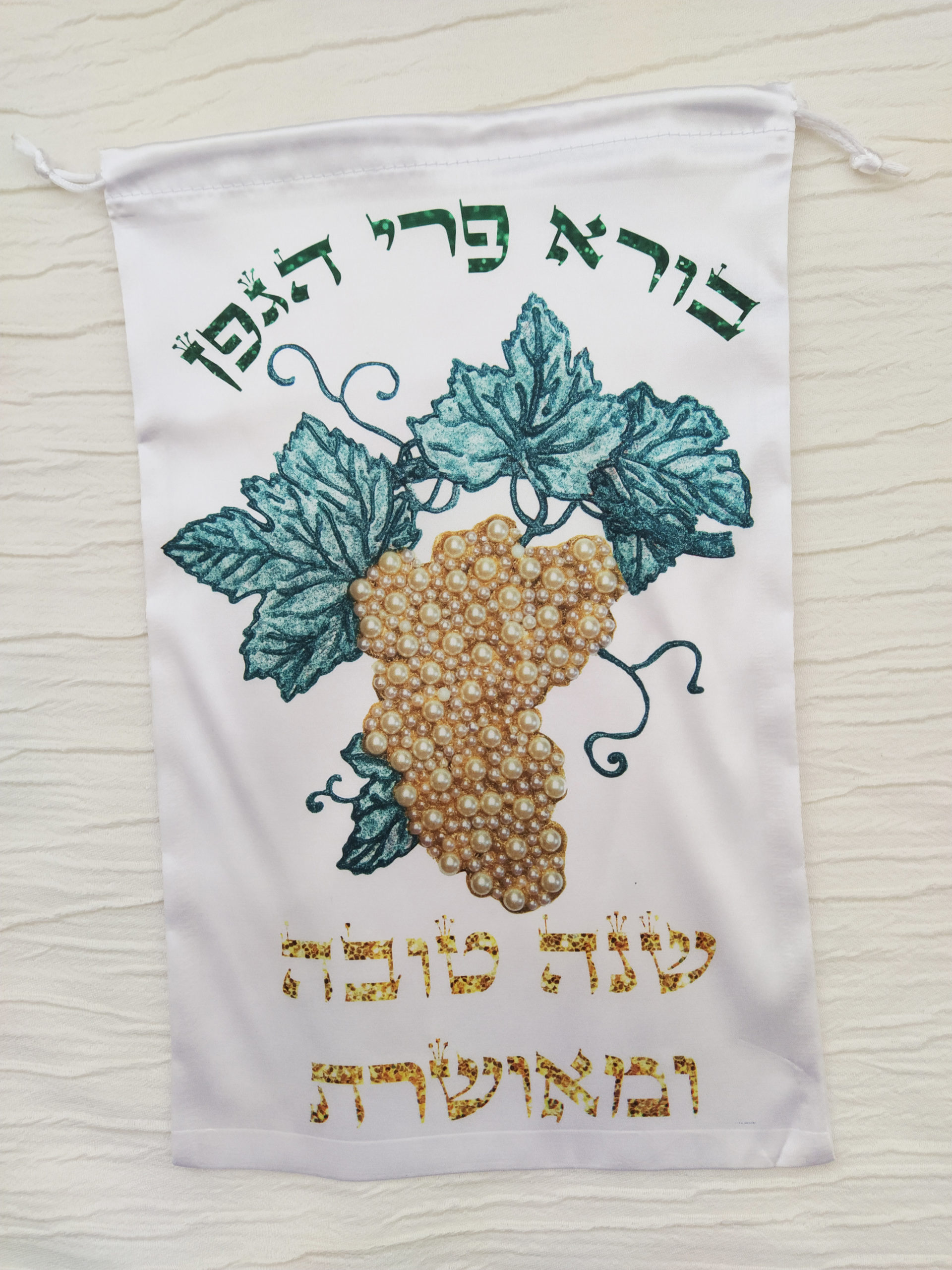 שקית סאטן לבנה בגודל 20X30 ס"מ עם שרוך סגירה, לכיסוי בקבוק יין קידוש בשולחן החג