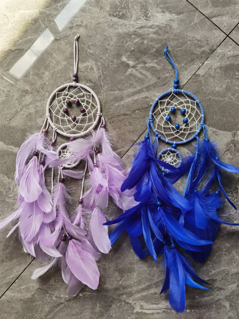 זמין בכחול אינדיגו או סגול לילך או ירוק מנטה, מקושט בחרוזי עץ.