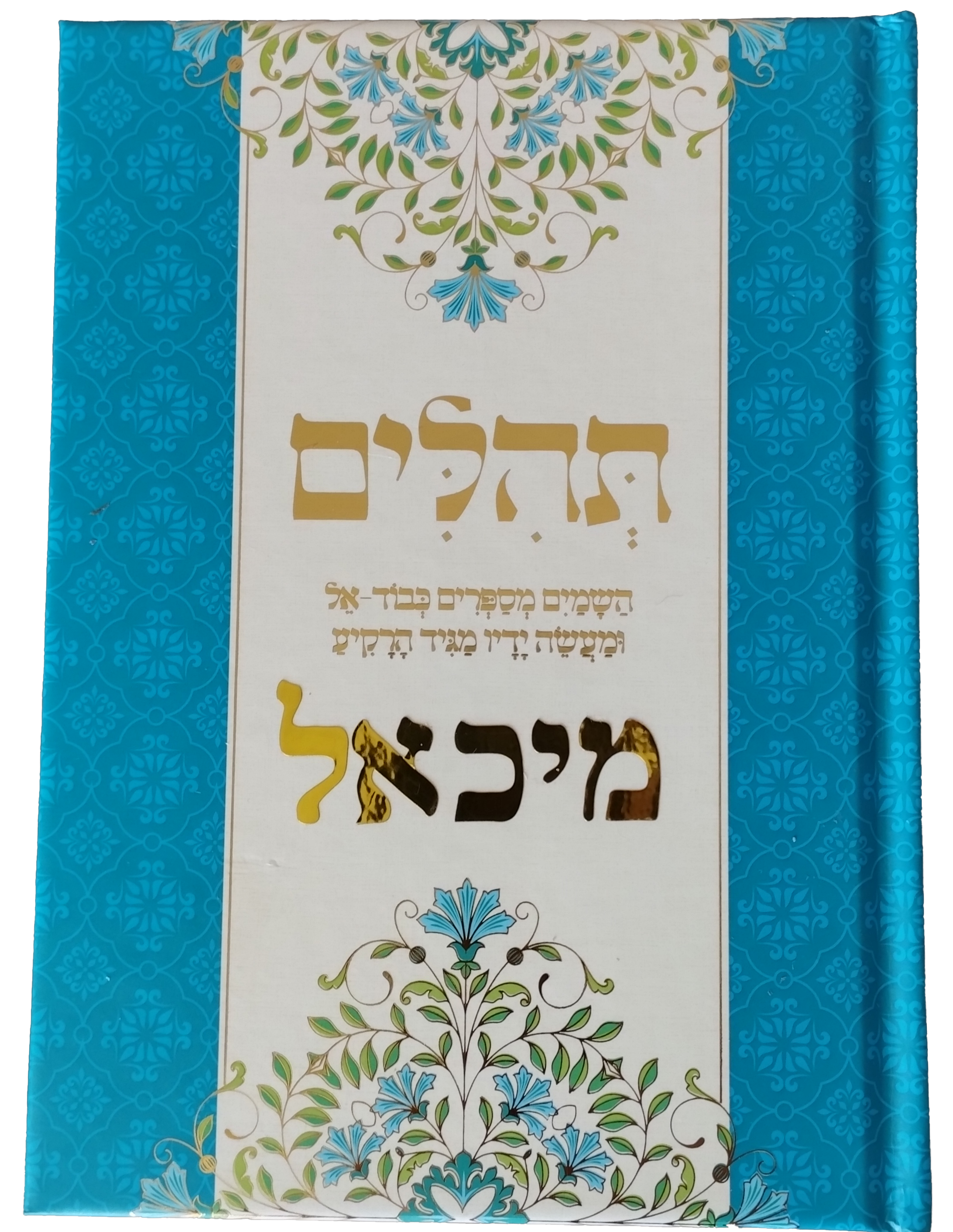 ספר תהילים טורקיז מהודר עם עיטורי זהב ושם הילד, גודל 12X17 סמ – העיצוב של הספר בלעדי לסדרת הארגמן