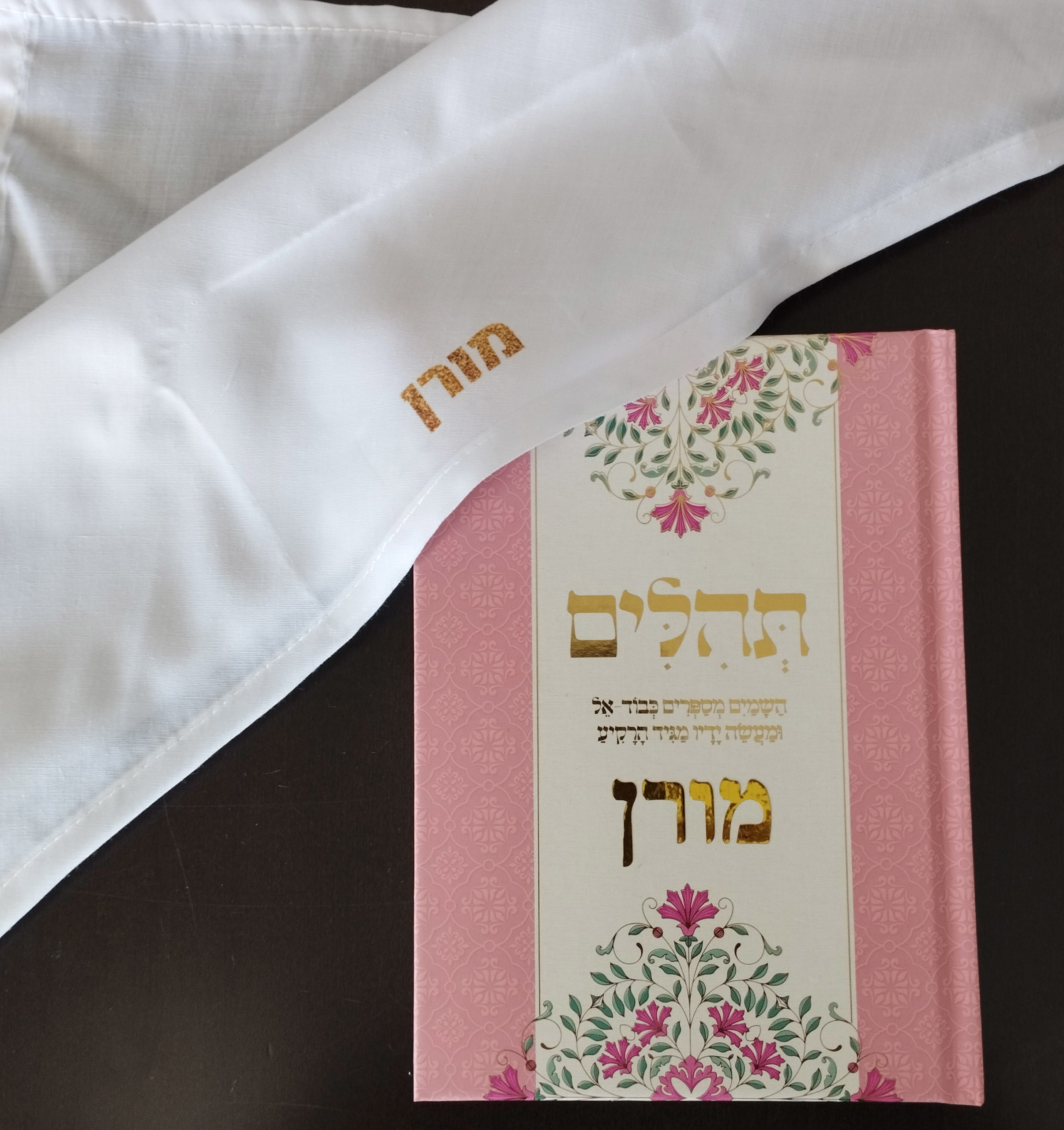ספר תהילים ורוד מהודר עם עיטורי זהב ושם הילדה, גודל 12X17 סמ – העיצוב של הספר בלעדי לסדרת הארגמן