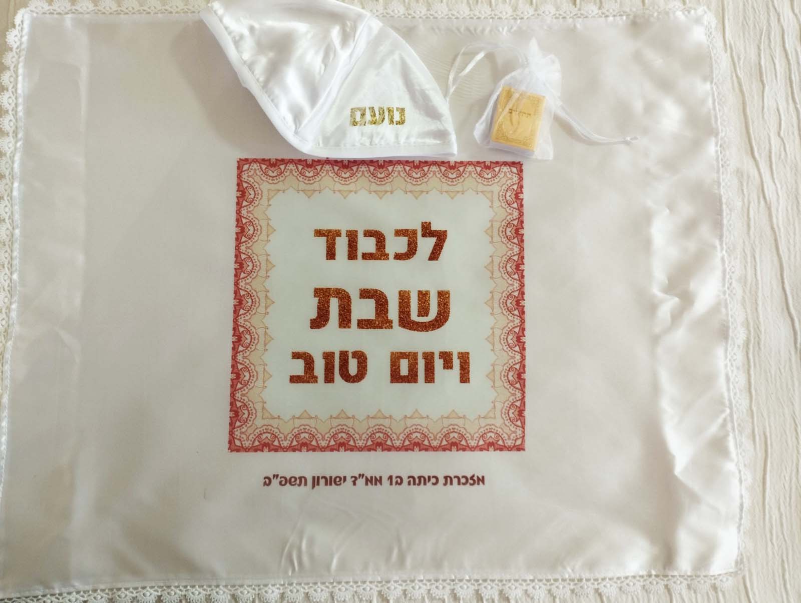 כיסוי חלה מהודר עם שול תחרה בגודל 50X40 סמ