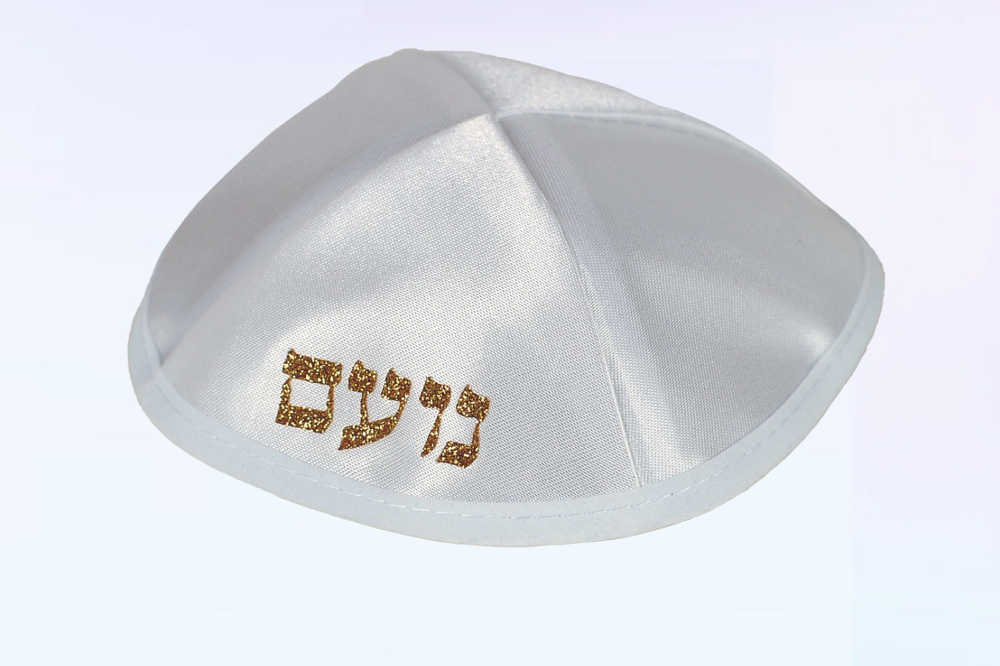 בנים: כיפת סאטן מודפסת עם שם הילד + נוסח ברכת אשר יצר + שמע על המיטה = 30 שח