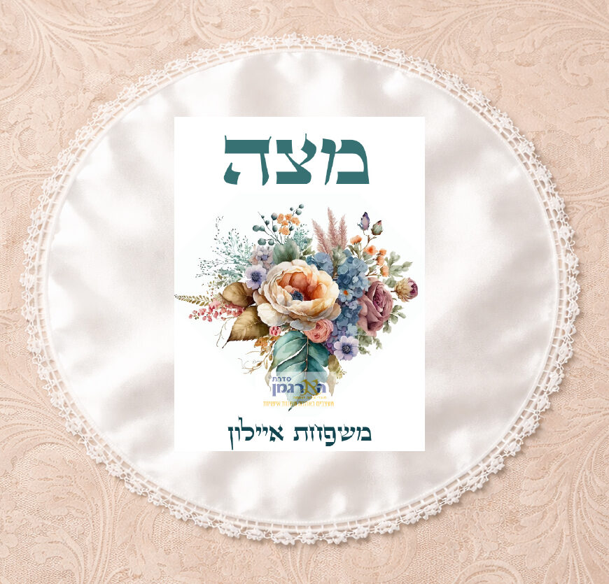 כיסוי מצה מהודר מסאטן עם שול תחרה לבן