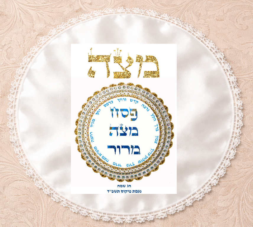 הכיסוי בקוטר 40 ס"מ עם 3 תאים לאחסון 3 מצות בליל הסדר