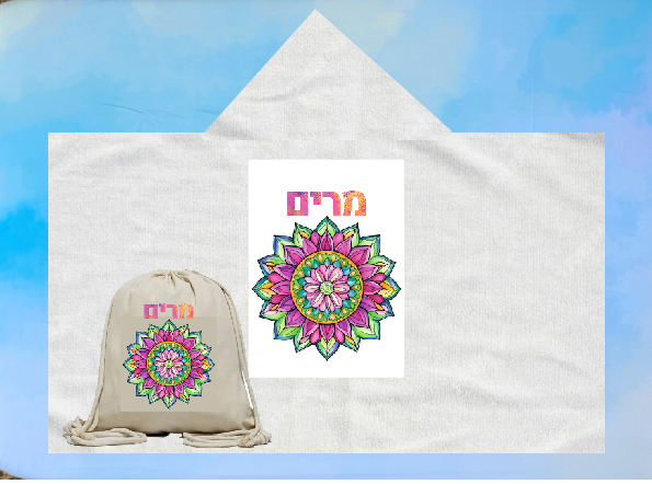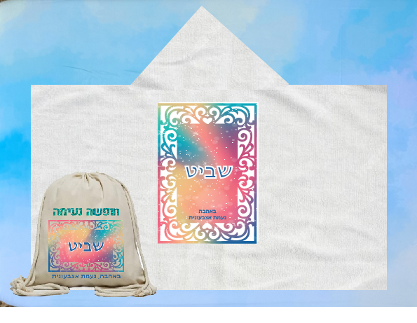 הדפסה של עיצוב עם שם הילד/ה+ תיק שרוכים איכותי מקנבס בהדפסה תואמת