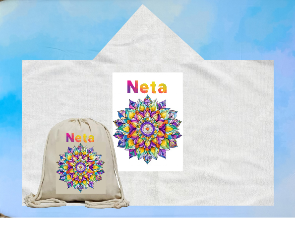 גודל שטח ההדפסה על כל אחד מהמוצרים: 4A. הפונצ'ו מתאים עד גיל 5, ותלוי בגובה הילד/ה.