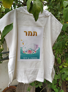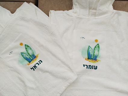 גודל שטח ההדפסה על כל אחד מהמוצרים: 4A. הפונצ'ו מתאים עד גיל 5, ותלוי בגובה הילד/ה.
