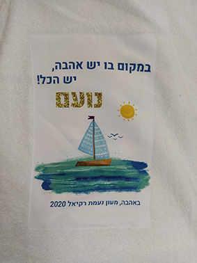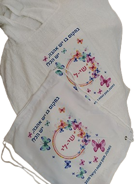 הדפסה של עיצוב עם שם הילד/ה+תיק שרוכים איכותי מקנבס בהדפסה תואמת