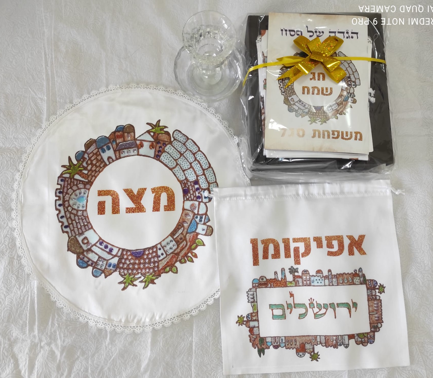 כיסוי מצה 3 שכבות עם שול תחרה לבן 40 סמ קוטר