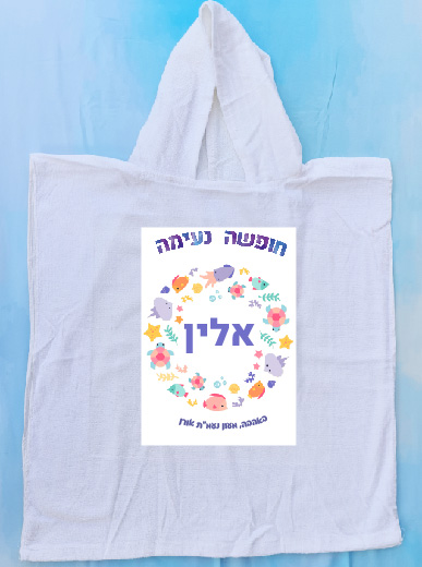 מגבת פונצ'ו 100% כותנה עם שם 38-42 שח