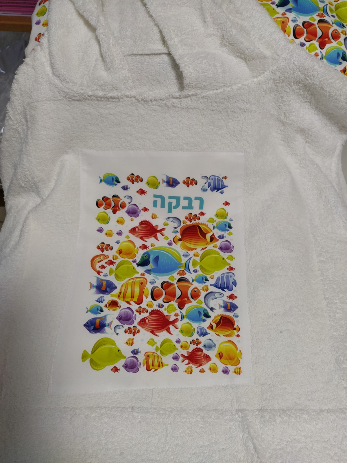 קפוצ'ון מגבת מודפס עם שם הילד
