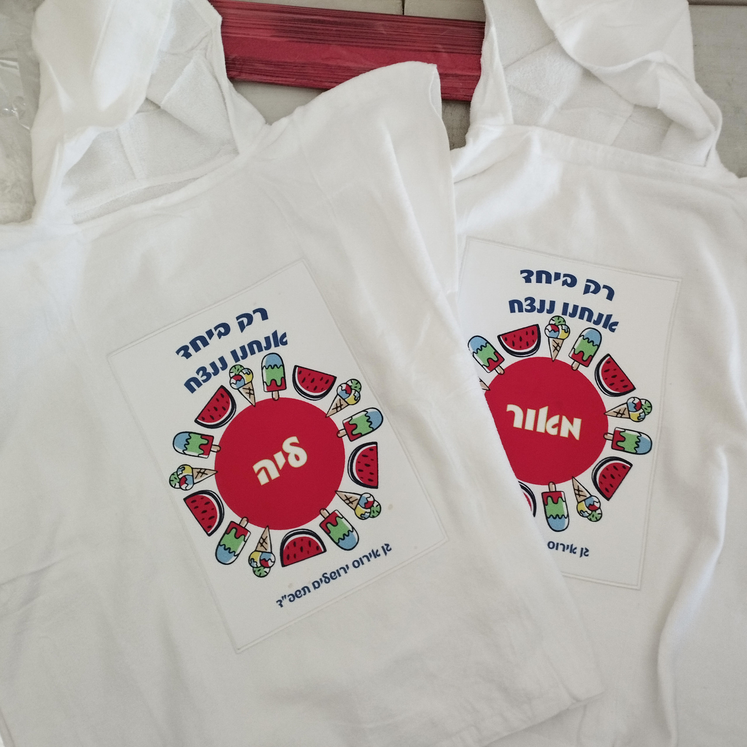 קפוצ'ון מגבת 100% כותנה עם הדפסה, שם הילד/ה והקדשה מהגן (הדפסה בגודל 4A)