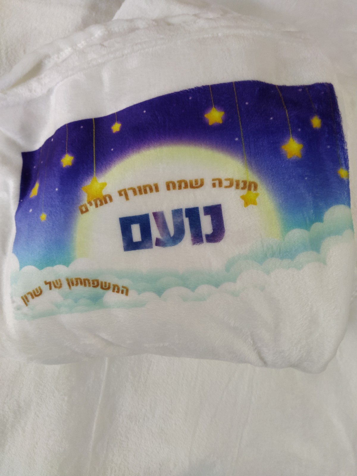 שמיכת פליז רכה לבנה עם שם 33 שח
