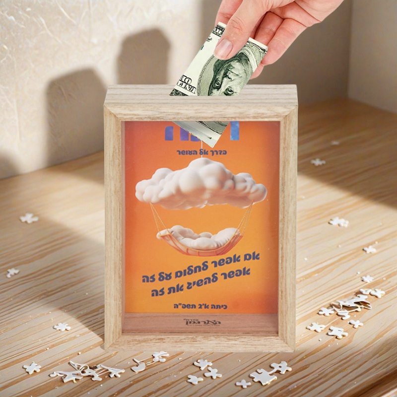 קופת חיסכון מלבנית מעץ 35 שח