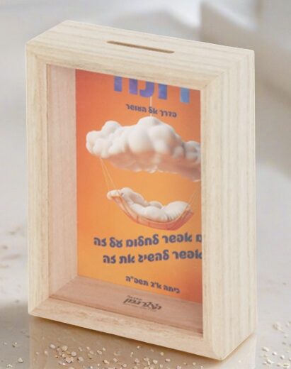קופת חיסכון איכותית מעץ טבעי עם חזית שקופה עם שם הילד/ה – לא שביר!