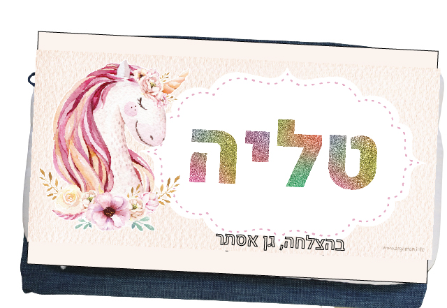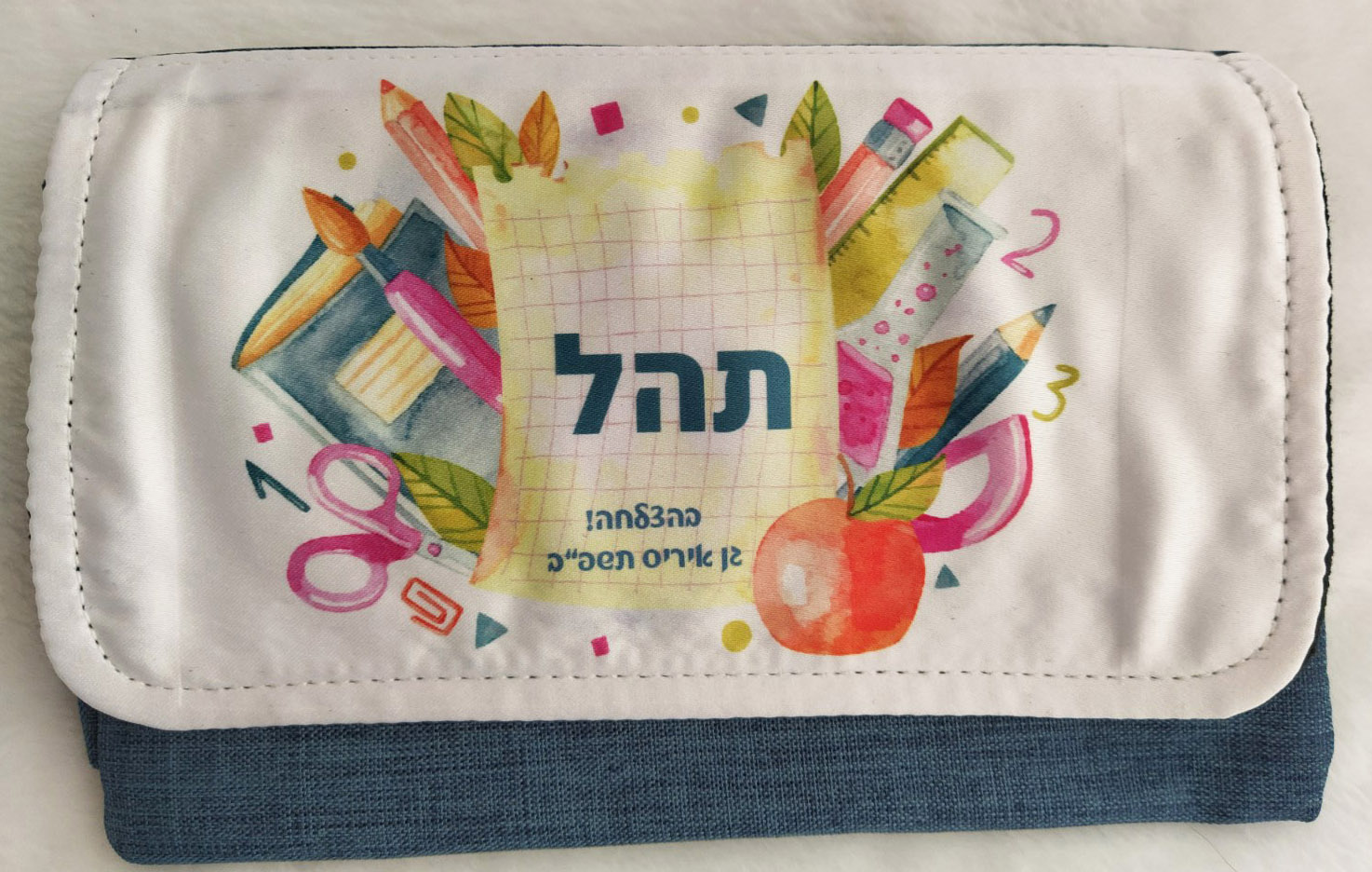 קלמר ג'ינס עם הדפסה ושם הילד/ה עם 3 תאים עם רוכסנים, גודל 20X13