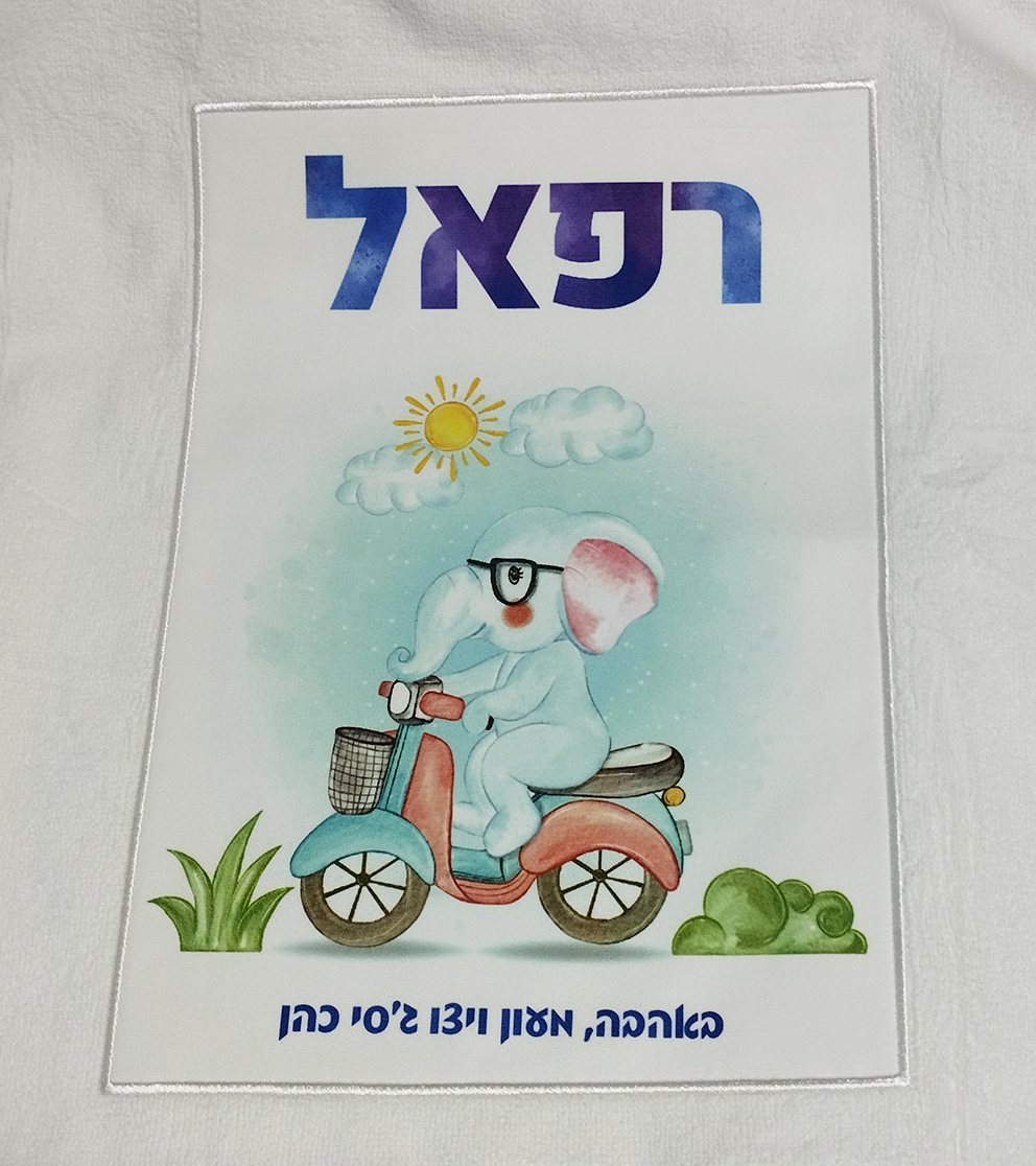 קפוצ'ון מגבת מודפס עם שם הילד