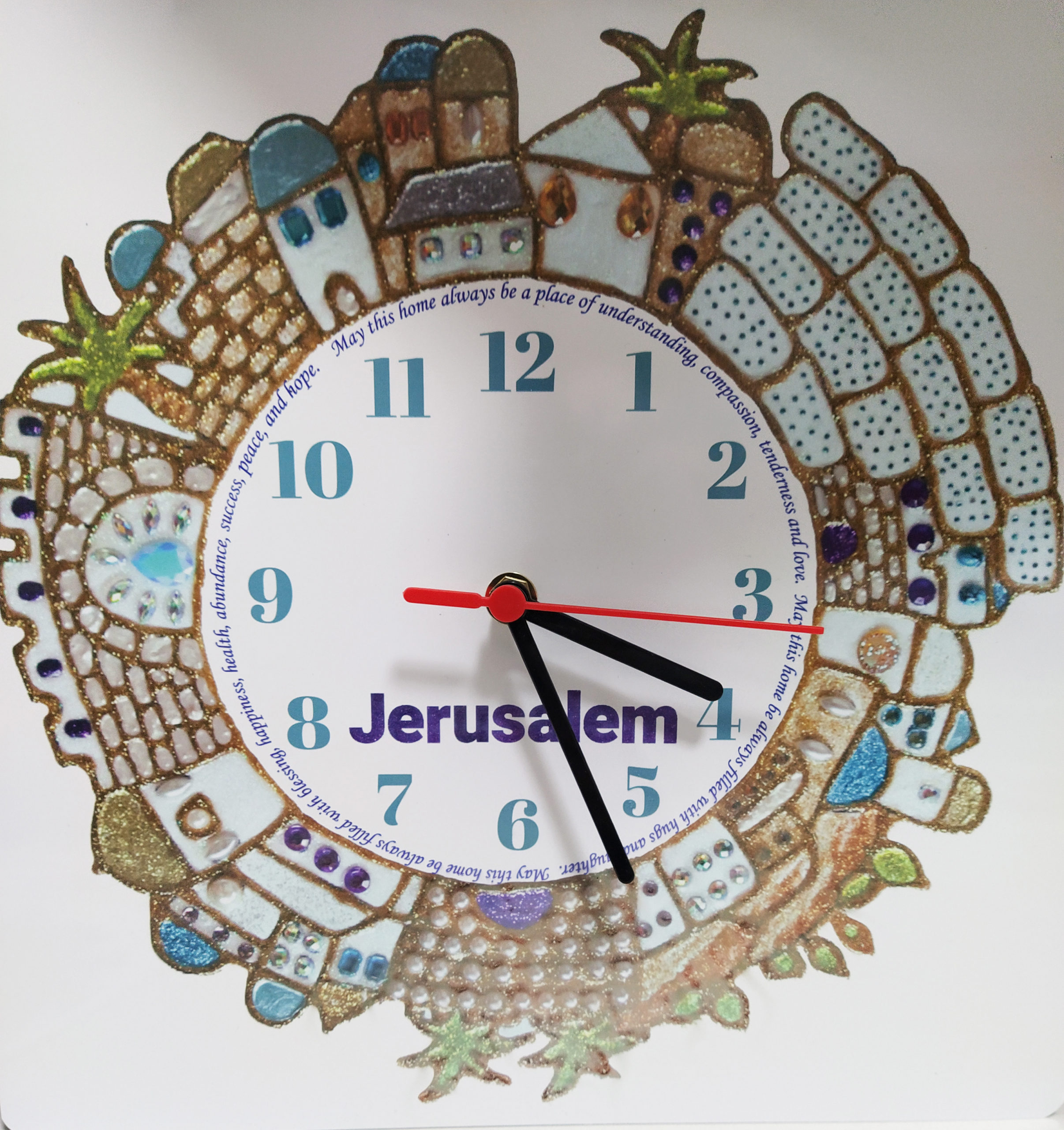 שעון קיר בגודל 30X30 ס"מ, מודפס על מתכת עם פינות מעוגלות, ואפשר לשנות את הכיתוב