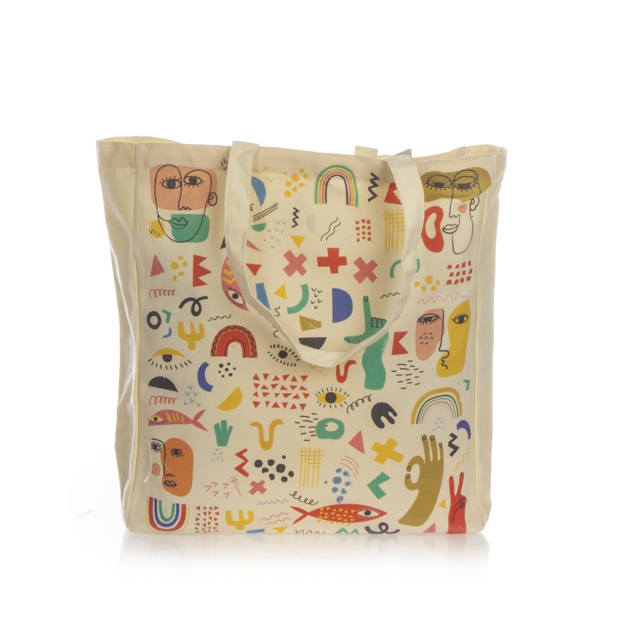 תיק קנבס צד גדול ונוח עם הדפס ב 4 סוגים שונים שמגיעים יחד (אפשר לראות את הדגמים בתמונות הגלריה)