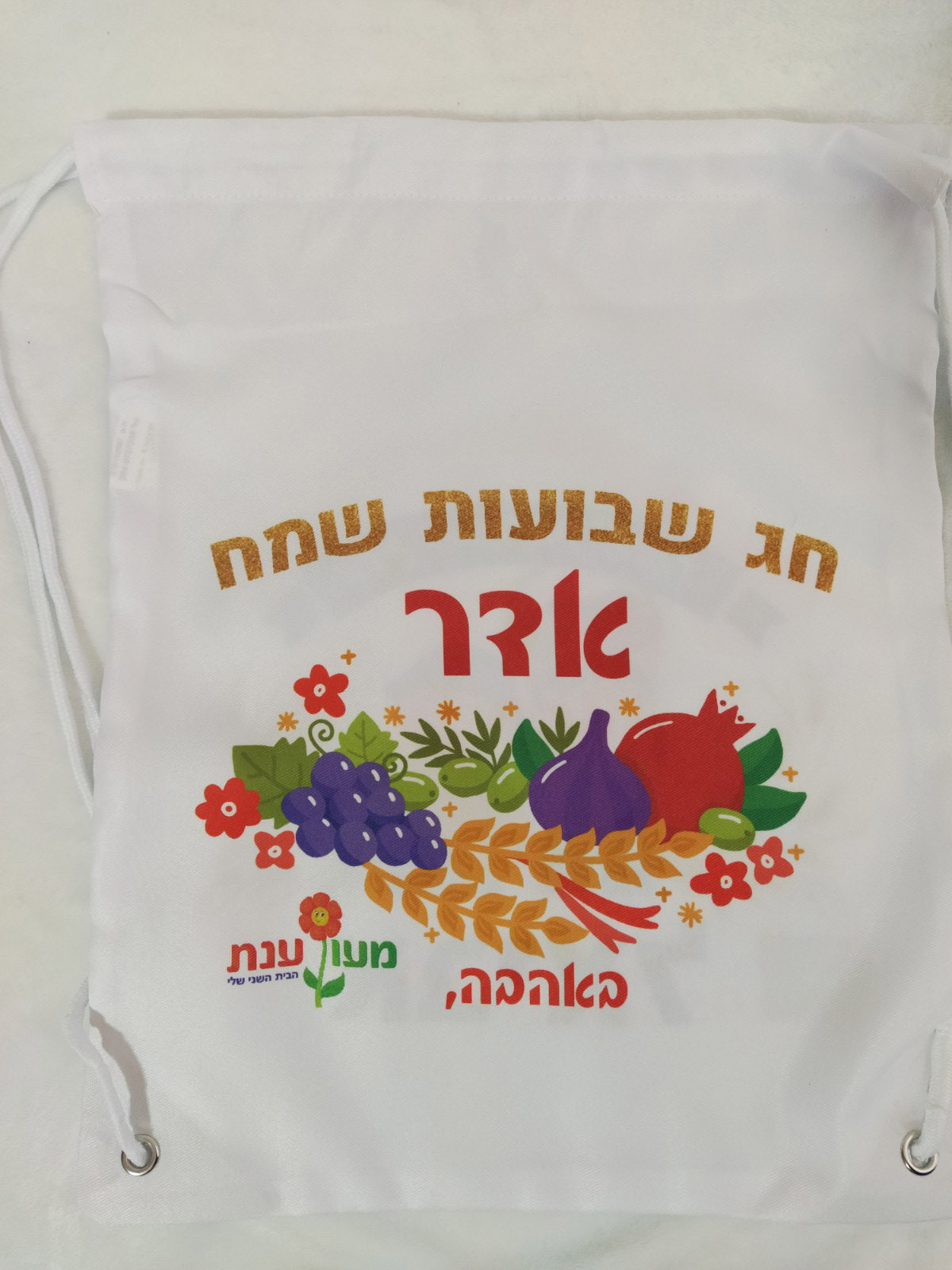 תיק שרוכים איכותי מבד, עם הדפסה ושם הילד/ה, כביס, לשימוש רב פעמי