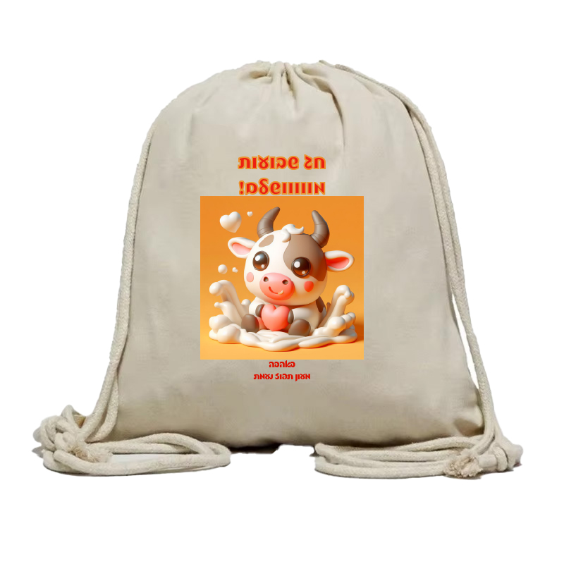 תיק שרוכים איכותי מקנבס, עם הדפסה ושם הילד/ה, כביס, לשימוש רב פעמי